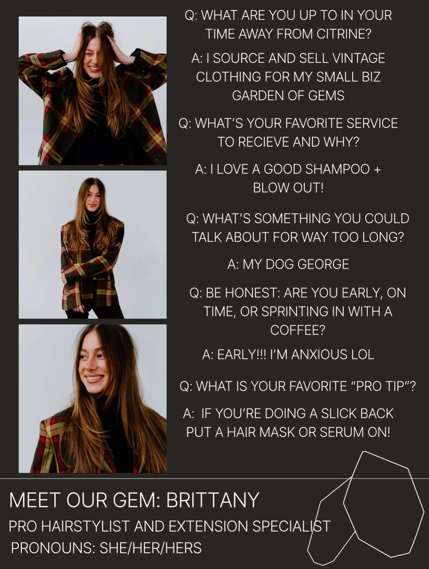 Meeting a new beauty professional can feel a little intimidating, we get it! At Citrine, every member of our team is highly skilled, but the best results come from working with someone who truly understands you. Not sure who that is yet? Try our quick matchmaking quiz and instantly discover who aligns with your goals, preferences, and personal style, so you can feel confident from the moment you step into our space.